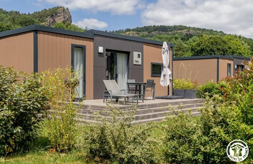 Come and stay in one of these six premium lodgings close to Lake Chambon. These new, latest generation cottages respond to a more architectural vision of the mobile home. The materials, used inside and out, display great sobriety, while being contemporary and sophisticated. Ideally located, you can enjoy Lake Chambon but also the many surrounding activities: hiking in the Chaudefour valley, skiing in Super Besse, discovering the gastronomic heritage in Saint-Nectaire ... With a total area of 35m² + 18m² of terrace, you will be amazed by the ergonomic layout which allows you to have space. You will find a living room with fully equipped kitchen, living room and dining table. 1 bedroom with 1 bed 160x200 and 1 bedroom with 2 beds 80x190. Each of the bedrooms has a bathroom and a toilet. Outside you will have the pleasure of spending good times on the terrace with its deckchairs, its garden furniture and its barbecue or on the pétanque ground shared by the 6 cottages. The maximum capacity is 4 people, no additional baby possibility if 4 people. No washing machine and no possibility of renting linen. Are provided: draw sheets, pillowcases and duvets (duvet covers not provided, to be provided). Shops and services are in Chambon-sur-Lac and Murol just 2 km away. Cheese dairy (products from Auvergne and bread depot), restaurant, pizzeria, tobacco newspapers in the immediate vicinity.
