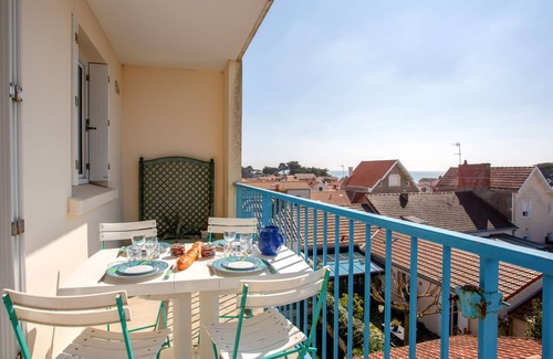 "Les Tilleuls 21", 2-room apartment 52 m2 on 2nd floor, south facing position. Living/dining room with 1 double sofabed (1 x 140 cm, length 190 cm), TV (flat screen). Exit to the balcony, south facing position. 1 room with 1 french bed (1 x 140 cm, length 190 cm). Kitchen (mini-oven, oven, dishwasher, 2 induction hot plates, toaster, kettle, microwave, electric coffee machine, Capsules for coffee machine (Senseo) extra) with dining table. Shower, sep. WC. Electric heating. Balcony 5 m2, south facing position. Balcony furniture. View of the sea. Facilities: iron, hair dryer. Internet (WiFi, extra). Parking space n 16 (fenced 1 car). Please note: non-smokers only. Smoke alarm. Offer by a private individual according to Art. 155, IV of CGI. 44012000167LP