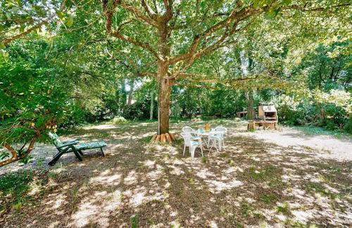 Here, we focus on what was already there. We have recovered beautiful antique furniture to preserve the original character of this seaside house. We disconnect, forget the tablet for a board game, enjoy a large 1000 m² garden to play outside or relax in the shade of a hundred-year-old oak. In this beautiful wooded garden, you will find the necessary furniture for your outdoor meals and to rest or read a good book. A barbecue awaits you to prepare delicious grilled dishes over the embers.
