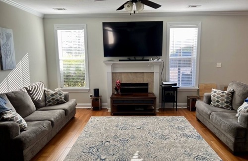 Spacious yet cozy, the open layout provides the perfect retreat for Masters patrons looking for a safe, quiet, convenient, and nice stay while in town with quick drive to the Augusta National. It features a kitchen with high end Frigidaire appliances (to include gas 5 burner stove), that is fully equipped for your convenience. There is a powder room conveniently located off the main floor kitchen. We have a workout area for use with 50” tv which offers a treadmill, recumbent bike, and a workout bench with weights. There is no shortage of seating and gathering spaces at this home - there are comfortable couches and recliners in the living room featuring a 70” tv, a formal dining room that seats 8, a second floor media room featuring board games, a couch, and 55 “ tv to watch movies, a covered front porch with chairs and, backyard outdoor covered area with seating and grill. The yard is well maintained and enclosed by a privacy fence.