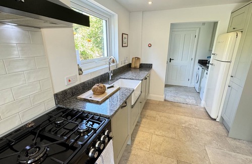 Kitchen: range cooker with 5-ring gas hob,Quooker instant hot water tap, dishwasher and over-under fridge/freezer.
