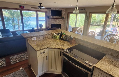 With direct access to snowmobile and ATV trails, Lily Bay Lodge is a four-season getaway for outdoor enthusiasts. There’s plenty of parking for trucks and trailers, and the large yard makes loading and unloading gear a breeze. Inside, you’ll find a warm, welcoming atmosphere with a fully equipped kitchen, comfortable living spaces, and a lakeside deck ideal for grilling or relaxing after a day on the water or trails.