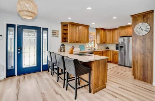 Walk in through the rocking chair front porch to a recently renovated kitchen and large two-story open family room, complete with Smart TV streaming all your favorites. Plenty of space for the entire family to gather around the island or dining room table to enjoy breakfast together. For the chef in the family, this kitchen won’t disappoint and is stocked with everything you will need! And when you need a break from it all, the screened in porch is perfect to enjoy a good book and a cup of coffee. Also on the main floor are the Owner's Suite, 2 additional bedrooms and 1 hall bathroom.