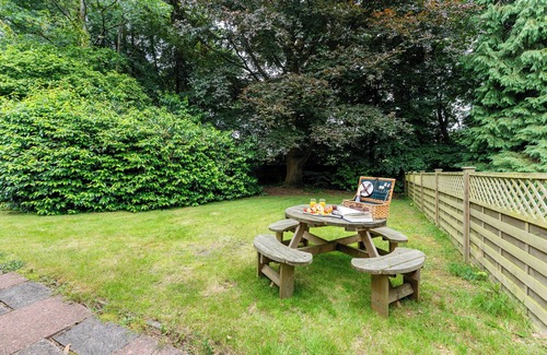 Approaching the property, as you make your way through the secure parking area, you will be greeted by a fully enclosed garden, enveloped by tall trees and lush shrubs. The spacious lawn provides the perfect setting for a leisurely picnic at the charming picnic table, while the woodland area at the far end offers a delightful escape for little ones - perfect for building dens and also featuring some small children's play equipment.