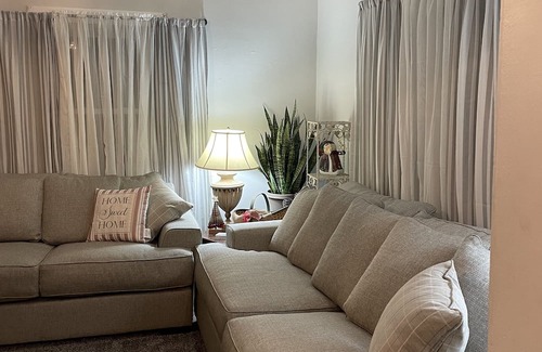 Cozy up to a warm fireplace and enjoy the quiet space this home has to provide. Skip the hotel stay while you visit your family and friends. The home provides two bedrooms and a fully remodeled bathroom with all the necessary amenities. The kitchen has a full size fridge, oven, and all the cooking equipment to make a full meal while you enjoy an extended stay.