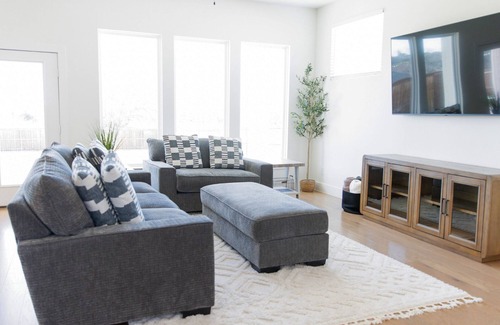 Welcome to our Little TX Home! This is a 2,500 sq ft fully furnished, brand new build in the heart of Celina, TX, with 3 beds, 2.5 baths, a full kitchen, and comfy living spaces. This home is full of light and thoughtfully curated amenities, including plush couches, large TVs, brand new mattresses, a washer and dryer, large back yard, games for the family, and necessities for your tiny little ones. Downstairs you will find a relaxing living room, a dining table with six seats, a half bath, and a spacious kitchen, featuring a bar with four stools. The large master suite with attached master bath and walk-in closet is located upstairs, along with a comfortable family/ TV room, full bath, and two more bedrooms. This home sits on a quiet street, backing up to open farmland and incredible views of stunning Texas sunsets. Located only a few blocks from historic downtown Celina and within a 10-15 minute drive to more incredible restaurants and shopping, family fun is never far!