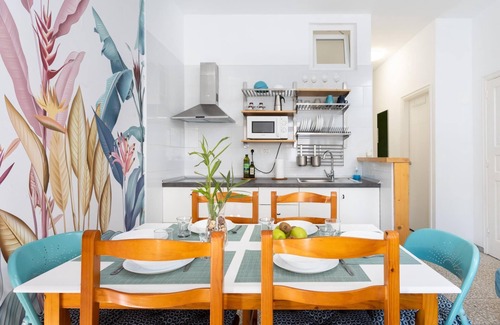 Bright Apartment for 7 people ideal for families or group of friends with incredible views of the sea, it is located just 2 minutes walk from the beach with a natural pool, located in a small town coastal area in the south of Tenerife, where you can spend a few days of tranquility and rest with family or friends.