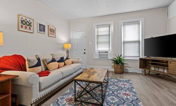 This unit is a first-floor, one-bedroom apartment within a triplex. This unit has a private entrance located at the back of the house. Other short-term rental tenants may be living in the other two rental units and will be coming and going from the property during your stay.
