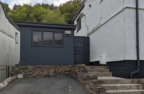 Llety'r Wyddfa is reverse-level and consists of a first-floor open-plan living space with kitchen with electric oven, gas hob, microwave, fridge/freezer, a dining space for four and a sitting area with a Smart TV. The bedrooms consist of a king-size and a twin with en-suite shower room, serviced by a first-floor shower room. Outside there is a non-enclosed decking and patio with furniture, an external utility with storage, washing machine and tumble dryer, off-road parking for one car, and additional roadside parking. Within 0.8 miles or less you will find a shop, a pub, and a lake, and please note this is a smoke-free property. Two well-behaved pets welcome. Travel cot, highchair, and stairgate available. WiFi, fuel, power, bed linen, and towels included in the rent. Explore the beauty of Gwynedd with a stay at Llety'r Wyddfa. Note: Steps down to patio and up to front door. Note: Steep slope on drive. Note: Handrail only on one side of the stairs