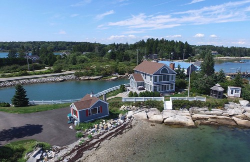 Lobster Landing sits atop half an acre of private acre located directly on the Atlantic Ocean, offering a lovely Maine oceanfront getaway. The main house has 3 bedrooms / 2 bath and is approximately 2,500 SQ FT. The water view cottage is approximately 400 SQ FT and offers space for 1 bed and an amazing office setup. All bedrooms are lined with windows, offering views of passing lobster boats and schooners, changing tides with breathtaking sunsets. Everything you need for your stay is provided, including a fully equipped kitchen, luxury linens and towels, high-speed Wi-Fi, outdoor furniture and grill, cable, flat screen TV’s with Netflix built in for watching movies. The Lobster Landing is setup to match the laid back relaxing vibe that Maine has to offer.