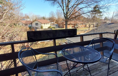 This apartment (the upstairs of a duplex) is located in a peaceful residential neighborhood not far from the highlights of Cedar Falls including downtown and the university. The apartment is spacious and comfortable while featuring decor from around the world to explore during your stay. The kitchen is well-equipped for those who want to cook or for those who just want a cup of coffee (locally roasted). There are two bedrooms with one having a daybed and trundle perfect for kids.
