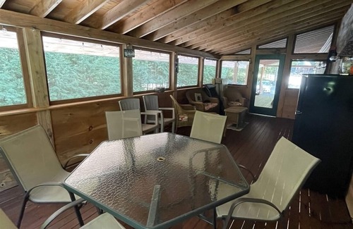 OCCUPANCY LIMIT 19 MOOSE POND - KNIGHT'S HILL COMMUNITY. **This Place Has It All** Located in desirable Knights Hill Association on Moose Lodge in Bridgton. Four bedrooms (plus additional sleeping in loft and finished lower level) allows for sleeping for up to 19. The basement area that sleeps 8 is suitable for teens and young adults. Three bathrooms, well stocked kitchen, great room with large flat screen TV, cable and internet. Sitting area off kitchen with wood burning fireplace. Two 2-person kayaks (bring your own life jackets), a pool table, air hockey table, dart board, yard games and a fire pit for your enjoyment. A mooring is available during boat during the boating season. The property is quite private. The Knights Hill Community is perfect for families, offering a nice beach area (there is even a pet friendly waterfront area), two tennis courts, pristine adult and kiddie pools and a dock for you use in loading and unloading. For winter guests, the property is minutes from Shawnee Peak and an hour from Sunday River for great, groomed skiing. Snowmobile trails and ice fishing practically outside your door. DOGS CONSIDERED WITH $125 PET FEE