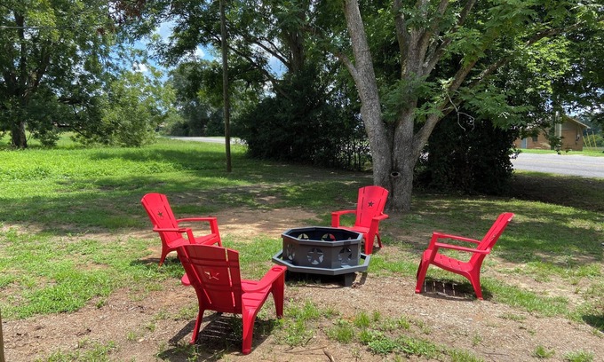 Work, TDY, graduations, traveling nurse, visiting family, or just passing through...enjoy the peace and comfort of our cozy stand-alone farmhouse, no sharing of walls or crowded streets for parking. Relax on our deck and listen to the birds while you start your day or unwind after a busy day. At night enjoy the fire pit where you can sit and relax. We are 1/2 mile from Freedom Dr. and less than three miles from the Enterprise Gate which is open 24/7 to Fort Rucker. This is the perfect location, literally a 5-10 minute drive to whatever your needs may be. Our farmhouse has been in our family since 1943. It is safe, cozy, private, peaceful, and recently renovated. Once surrounded by farming land, there are still remnants of the farming past nearby. Although a smaller home, our home is more spacious than you'd expect, there are only two bedrooms which will sleep four people very comfortably and one bathroom with a shower/tub combination. The living room area is spacious and includes a large television for viewing live TV, movies on demand or whatever your streaming desires may be. There's a full kitchen with numerous amenities. The kitchen is open to the dining area which has a large table with six chairs. A coffee bar provides a Keurig Duo for whatever your hot beverage preference may be. There's a room in the center of the home which has a desk for working from and bookshelves filled with books, puzzles, cards and board games. Our laundry room is spacious and will allow you to pack less and have clean clothes when you return home or to your next destination! There's a front porch to relax on and you'll definitely hear birds chirping, and if you're up early enough, you might hear the neighbor's roosters crowing. The location is very close to all the airfields, easy access to both the Daleville Gate and the Enterprise Gate. It's very convenient to the aviation museum, which is a must see and it's only 30 minutes from the Dothan Regional Airport if you're flying into town. We're even close to the beaches, only 1 1/2 hour from Panama City Beach, "the world's most beautiful beaches". Our farmhouse could be your home away from home. We hope you'll enjoy what our place in Enterprise has to offer. It's located on a paved county road on over an acre of land.