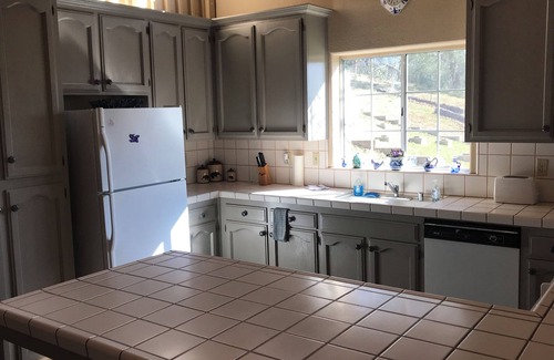 This spacious and open three-bedroom cabin has spectacular views and lots of privacy. Two of the bedrooms have queen beds and the third has two twins. In the grand room there is a futon and three sofas. There's a cozy loft with another futon and a TV with DIRECTV and Wifi. Situated on six acres, this property will give you a great cabin feel. Take in amazing views of the Sierras from the huge deck. Guest can use everything except the garage. All with the close proximity to Bass Lake (15 min) or Yosemite (35 min). 3days/2nights Cleaning fee required Must be 25 or older