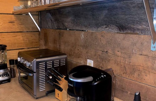 The kitchenette has a small refrigerator, convection oven, toaster, coffee maker and blender. On 6 acres with plenty of space to play corn hole or bocce ball or to just enjoy the fresh air. Feel free to check the chicken coup in the mornings for eggs. Please just respect the chickens and their environment.