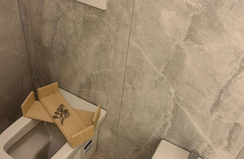 While you're here, you can enjoy all the comforts of home and more, including WiFi and a bidet, as well as air conditioning and an ironing board. Other amenities include towels, soap, toilet paper, and a hair dryer.