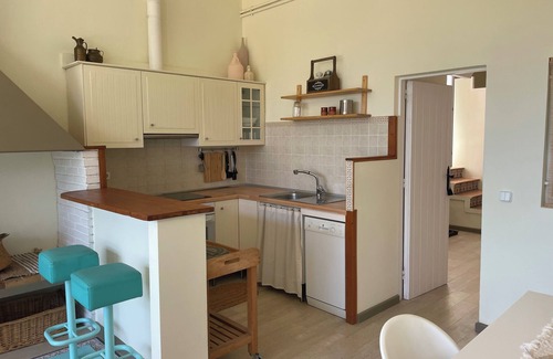 Enjoy an unforgettable summer stay in this charming loft-style apartment, located on the ground floor with a private entrance and a beautiful 50 m² private garden. It features an Argentinian barbecue and a cozy chill-out area, perfect for relaxing outdoors.