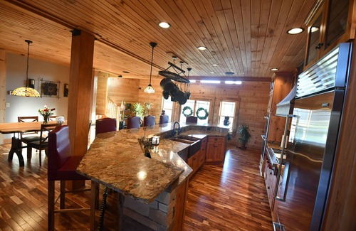 Escape the busy and drown out the noises of city life and picture yourself and your loved ones waking up refreshed and renewed in the heart of this beautiful, characteristic timber home estate located at the privately owned wooded oasis, Crosley Ridge. The property features a sprawling 108 acre secluded wooded oasis that is both enchanting and completely secluded. The sounds and sights of nature are all around from the minute you enter through the iron privacy gate. A beautiful one mile drive from the gate to the circle driveway that welcomes you to this unique timber home estate will leave you breathless and ready to explore what the estate and the property have to offer for your home away from home luxurious getaway with Mother Nature. The home itself features 3 large bedrooms (one master suite on the main level, one bedroom with a California king size bed on the lower level, one bedroom with a queen size bed on the upper level). This timber home also features three full bathrooms (one on each level of the home) and one half bathroom on the main level of the home. The kitchen is completely stocked with everything you'll need to enjoy home cooked meals including a gas stove, a double oven, a large subzero refrigerator, microwave in the pantry, and all cooking and dining utensils and tableware are included. The third level of the home is loaded with gaming activities and includes a billiards table, a ping pong table, and a shuffleboard table. The main level of the home includes a large kitchen, a coffee pantry, a large dinning room featuring a custom made live edge wooden dining table that seats four, a large granite bar height counter top that seats eight, a large living room that makes the perfect relaxation and chat area with two sofas and a large ottoman, a large laundry room with a washer and dryer that comes stocked with laundry essentials. The main level includes three sliding doors that all open to the outdoor upper deck. Take in the serene views of this sprawling wooded estate right from the upper deck, which includes lots of outdoor furniture (sofa, four large cushion chairs, ottomans, a large rectangle gas fire pit table, an outdoor TV, a wood pellet grill and smoker, and a large outdoor dining table that seats six). Moving down to the lower level of the home is a fully finished basement. The lower level of the home features a gym that includes a treadmill, elliptical, Echelon spin bike, a full strength training unit, along with yoga mats, dumbbell weights, and resistance bands. Enjoy a workout and then rejuvenate and recover your muscles with some time in the large infrared wooden sauna located on the lower level. The lower level also includes a large living room area with a sectional sofa and a TV. Lastly, the large relaxation bathroom on the lower level includes a deep copper bathtub that is perfect for a relaxing bubble bath. The lower level also includes two sliding doors that open to the lower deck in the back of the home that faces the sprawling wooded acres of Crosley Ridge.
