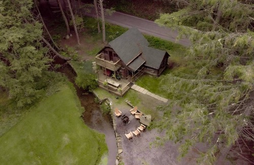 Log Cabin on Stream Firepit 1 g WiFi Cherry Spring | Cabin in Coudersport