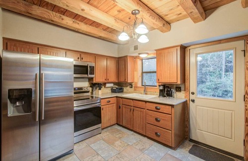 Welcome to your woodland retreat! Our charming 4-bedroom hideaway has two private downstairs bedrooms with queen beds, and a fun open-space loft featuring two twin-over-twin bunk beds. Jump in the pool, grill up some food, or enjoy a cozy evening by the indoor fireplace. Enjoy nights around the fire pit or bounce on the trampoline! Nestled in the trees, yet only minutes from local attractions and adventure, it’s perfect for those seeking both serenity and excitement.