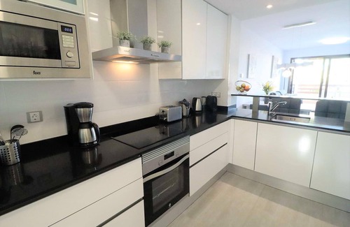 The accommodation offers a garden with gravel, a lawned communal garden with trees and a view of the mountains. Its comfort and the vicinity of the beach, places to shop, sports activities, entertainment facilities, sights and culture make this a fine apartment to spend your holidays in Spain with family or friends.