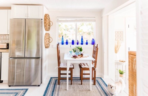 The space has just been renovated, so expect a carefully curated beach bungalow experience that holds just about anything you may need: hairdryer, steamer, beach towels, beach chairs, beach umbrella, pots, pans, utensils, plates, outside dining plates, platters, condiments, and all the fixings.
