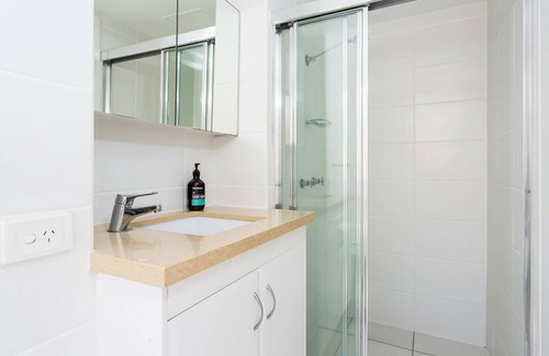 Situated on the 1st floor directly across the road from the beach, the apartment has 1 x queen bed and 1 x double bed, modern furnishings and overhead ceiling fans.