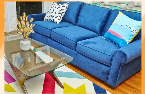 Pops of color and modern design meet comfort and functionality, creating a space where everyone can relax and enjoy.
