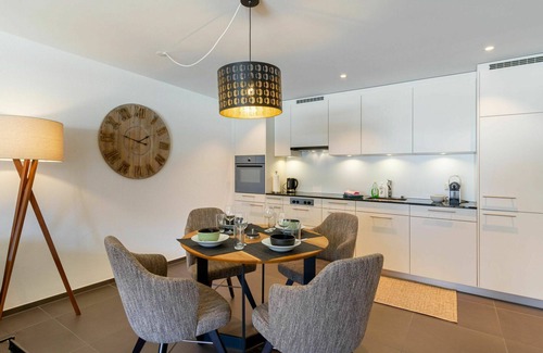The apartment is equipped with a range of amenities to ensure a comfortable vacation. The open kitchen comes with an oven, dishwasher, four ceramic glass hob hotplates, toaster, kettle, electric coffee machine, and a steamer, raclette grill, and fondue set (cheese). Other amenities include underfloor heating, a large south-facing balcony with balcony furniture, a children's high chair, and a hair dryer. Internet (WiFi) is provided free of charge, and there is a reserved roofed parking space available.
