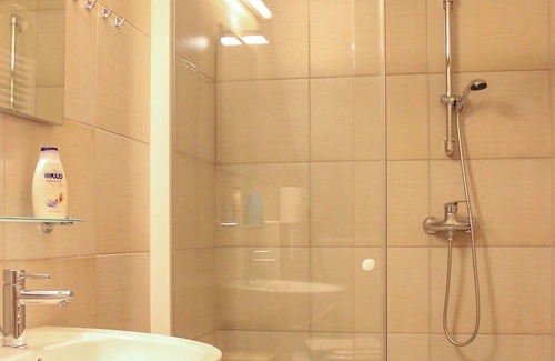 "Apartment Komna", 3-room apartment 65 m2 on 1st floor. Simple furnishings: living/dining room with satellite TV (flat screen). Exit to the balcony. 1 room with 1 bed and 1 double bed. 1 room with 1 double bed. Kitchen-/living room (4 hot plates, oven) with dining table. Shower/WC. Electric heating, oil heating. Balcony 10 m2. View of the mountains and the countryside. Facilities: Internet (WiFi). 1 pet/ dog allowed.
