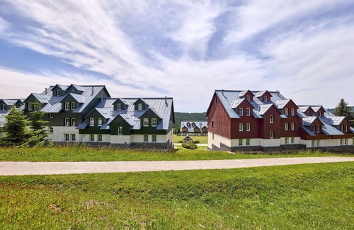 Located in Horní Mísečky at 1,000 meters above sea level, this modern apartment block offers a convenient holiday rental experience. Situated just 10 meters from the center of Horní Mísečky and 20 kilometers from Jilemnice, Czech Republic, the property provides essential amenities including complimentary WiFi internet access and covered parking facilities. The building features dedicated storage areas for both bicycles and skiing equipment.