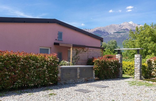 Gelsomini is a modern terraced house built in 2016, located in the district of Curcio, 2 km from the center of Colico, Italy. This holiday rental offers a shared property of 1'000 m2 with a fenced meadow, a swimming pool (8 x 4 m, depth 145 cm) with a salt-electrolysis pool-cleaning system, available seasonally from April 30 to September 30. The property also features an outdoor shower, a barbecue area, and parking facilities at the house and a public parking area nearby. Enjoy amenities like Internet WiFi, a yard, and the option of an installment plan.