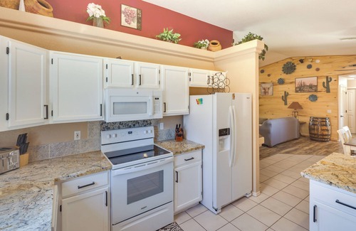 Simple days under the Arizona sun are right around the corner at this vacation rental. Situated 2 miles from the Colorado River, this 4-bedroom, 2-bath home is the ideal warm-weather escape for you and your loved ones. After starting your morning with coffee in the gazebo, spend the afternoon exploring Davis Dam, teeing off at Laughlin Ranch Golf Club, or testing your luck at Regency Casino. Then, wind down in the evenings with a meal prepared in the full kitchen and a dip in the hot tub.