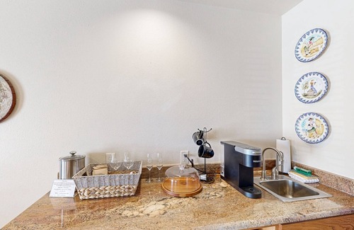 Begin each morning with a light breakfast and a freshly brewed pot of coffee on the wet bar, which also features a sink, a microwave, and small refrigerator for happy hour snacks and beverages. There is no kitchen in the Messina Cabin, but you'll find a wonderful Tuscan-inspired café at Grape Creek Vineyards just down the road.