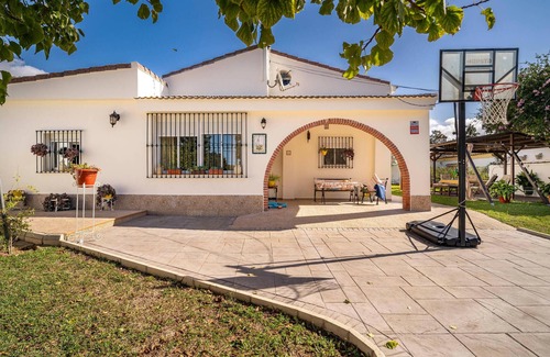 Treat yourself to a family break together under the sun of southern Spain, which welcomes you with this spacious house with homely furnishings. The lovingly decorated house creates an inviting atmosphere in which everyone can feel at home. Make yourself comfortable in the armchairs by the wood-burning stove or discover the terrace outside, where you can enjoy an evening barbecue, play basketball or take a dip in the pool. The large garden offers plenty of space for young and old to play and sunbathe and will become your private oasis.