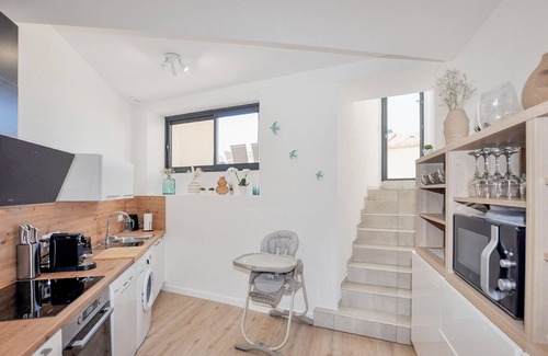 This modern house on several floors welcomes you in the streets of Maureillas-Las-Illas. You and your family can make yourselves comfortable here and enjoy the modern amenities of the house. While some of you work your magic in the kitchen, others can cosy up on the sofa and read a book.