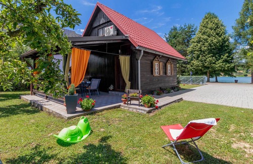 Rustic wooden house right by the lake, ideal for a holiday in the Croatian countryside.