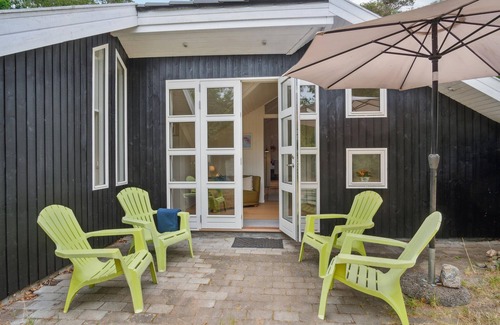Arrive and feel at home. The friendly vacation home with white wood paneling offers you and your family a pleasant living atmosphere, which is enhanced by the ceiling windows and the lovely decoration. Play board games together at the dining table or read a book in the wing chairs. But you can also enjoy the sun on one of the numerous terraces, conjure up a delicious barbecue buffet or play with your children on the lawn.