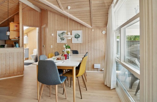 Discover South Zealand and relax in this lovely vacation home. The accommodation consists of a main house and a small outbuilding. The cozy main house offers you a nice living room, which is illuminated by the large windows in a pleasant light. Make yourself comfortable on the sofa, read a book or play board games at the dining table.