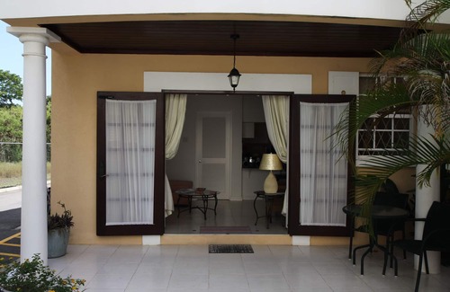 7 Springcourt is a lovely one bedroom ground floor apartment set in a quiet neighbourhood but only a 5 minute drive from Accra beach. The apartment is ideally suited for a couple and has been recently redecorated, benefitting from a fully equipped kitchen with granite worktops and Bosch appliances (electric oven with ceramic hob, dishwasher, washer/drier, microwave and fridge/ freezer) The air-conditioned bedroom has a queen size bed, bedside cabinets, a large bespoke fitted wardrobe, ceiling fan and black-out blinds / curtains. The comfortable air-conditioned living room overlooks the pool and has a large comfortable sofa and chair, coffee table, TV (cable TV), DVD and CD player and ceiling fan. The dining area seats four and there are patio chairs with table and sunbeds for relaxing and dining outside. Fast broadband is available throughout the apartment. The property features a communal pool and well kept tropical gardens. The delightful setting is at the end of Rockley New Road, a highly regarded peaceful residential cul-de-sac nestled behind Rockley golf course.