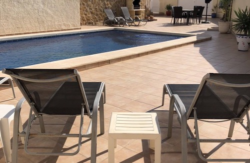 Beautifully furnished 2 bedroom, 2 bathroom fully air conditioned villa with its own private 8 x 4 metre swimming pool, set in a 400sqm plot with a walled garden for your privacy. Easy access from Alicante airport, which is 10 minutes by car and in a great central location for a full range of supermarkets, shops, bars and restaurants, all within walking distance. There is a large Commercial Centre less than 5 minutes by car or approximately 12-15 minutes on foot. There is also very good public transport and the local tourist train. This villa has fantastic outdoor space with a dedicated BBQ and outdoor eating area. The villa is very private with walled gardens, which have mature plants and palm trees. Walking distance to bars and restaurants (10 / 15 minutes) and Carabassi beach (30 minutes). There are excellent public transport links to Alicante and Santa Pola and around the local area of Gran Alacant.