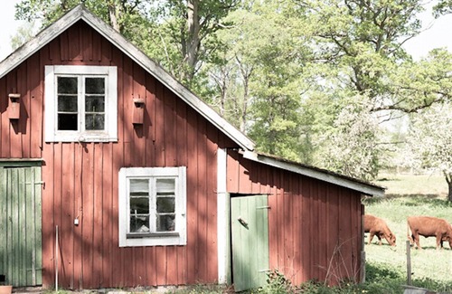 This spacious and cozy farmhouse is located on an organic farm in Annerstad.The farm has cows, pigs, chickens, rabbits and of course cats.This red Swedish house with a boat berth is located in the middle of the tiny village next to the church, on the river Bolmån.The house has a living room, a kitchen-diner, 4 bedrooms with 4 double beds and 2 bathrooms.There is a covered terrace, a grill and a garden.It is about 50 meters to the jetty on the water. Ideal for anglers and people who want to spend their vacation on the lake.On the farm you can rent a rowing boat, canoe or motorboat by the day or week.The TV only works for streaming.The café, restaurant, RV parking spaces and shop are about 50 meters from the house.In summer, food and drinks are served on the farmyard. There is a parking lot right in front of the house.There are excursions to the many small islands and places to swim.In winter, the sauna in the basement can be used. The restaurant on the farm serves a Christmas buffet in November and December.