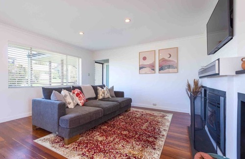 A romantic fireplace helps warm the house for the chilly nights keeping you cozy and the well-appointed kitchen with large oven, stocked with basic needs (tea, coffee, oil, herbs), flows seamlessly to the dining space with an 8 seater table to entertain. Double doors lead out to a cute alfresco area overlooking the generous and immaculate backyard, a great space to watch the kids kicking the footy.