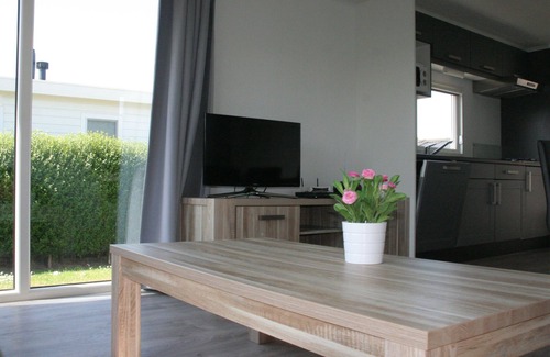 "Luxe 6 persoons", 4-room chalet 44 m2. Very tasteful furnishings: entrance hall with separate WC. 2 double bedrooms, each room with 2 beds. 1 double bedroom with 1 x 2 bunk beds. Living/dining room with dining table and TV. Open kitchen (4 hot plates, dishwasher, kettle, microwave, electric coffee machine). Shower. Heating. Terrace. Terrace furniture, box-room. Facilities: Internet (WiFi, free). Please note: non-smoking house. Smoke alarm.