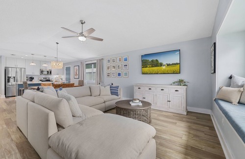 Welcome to Beach Estate, Jacksonville Beach's only pet-friendly vacation rental estate featuring two separate homes on one property - perfect for large families, reunions, golf trips, and group getaways. With both a main house and a guest house, each with its own private heated saltwater pool, this estate offers space, privacy, and resort-style amenities that are hard to find anywhere else. The main house sleeps 14 with 5 bedrooms, 3 bathrooms, two living areas, and a fully equipped game room, while the guest house sleeps 8 with 3 bedrooms, 2 bathrooms, and an open beach-inspired floor plan. Both homes include covered outdoor entertaining spaces, Smart TVs, and stylish, coastal inspired design.