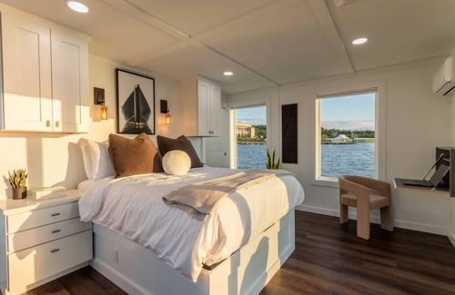 Welcome aboard FLOHOM 4 | FLOTOMAC, a city-modern designed floating suite docked at the prestigious National Harbor waterfront. FLOHOM 4 boasts unmatched views of the neighborhood and the Potomac River, offering prime vantage points for breathtaking sunrises and sunsets.
