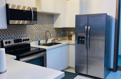 Bright, luxurious, city center apt is the perfect base to explore Kingston's cultural and vibrant marketplace, rich with food, music, night life, dance & the arts. Centrally located - 5 mins. from Jamaica Pegasus & Emancipation Park. This luxury living space has everything to make you feel at home - gated, 24 hr. security, free park, gym, pool, rooftop entertainment area, WiFi, washer/dryer, king bed, en-suite bath, office area, powder rm & balcony with views of Kingston’s harbor & waterfront.
