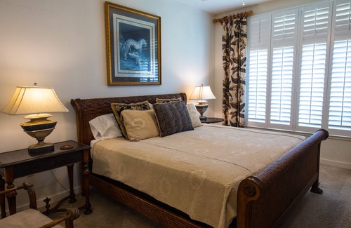 The master suite is beautifully appointed with a King size bed, dresser, two nightstands and a TV. The master bath includes a large walk-in closet with lots of hanging space, along with a double sink with granite counter tops. In the master bath a door divides a large shower, bathtub and toilet. The second and third bedrooms are beautifully appointed, and have queen beds, large closets and a TV. The condo also includes a washer and dryer.