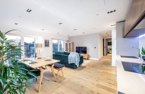 Welcome to your stunning retreat in the heart of London! This beautifully furnished 2-bedroom, 2-bathroom apartment, located in the iconic Keybridge Tower in Vauxhall, offers the perfect blend of comfort and convenience for your London stay. Ideal for up to 6 guests, this luxurious home features a spacious living area with a sofa alongside two UK King-sized beds in each bedroom.