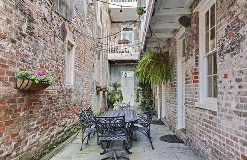 Experience the best of New Orleans in this beautifully renovated 1840 property, perfectly blending historic charm with modern comforts. Situated on the 3rd and 4th floors, this spacious 1500 sq ft unit accommodates up to 6 guests with 2 well-appointed bedrooms. The interior features bright and airy living spaces, a fully equipped kitchen, and stylish decor with exposed brick and hardwood floors. Enjoy the charming outdoor patio and balcony, ideal for relaxation and taking in the city views.